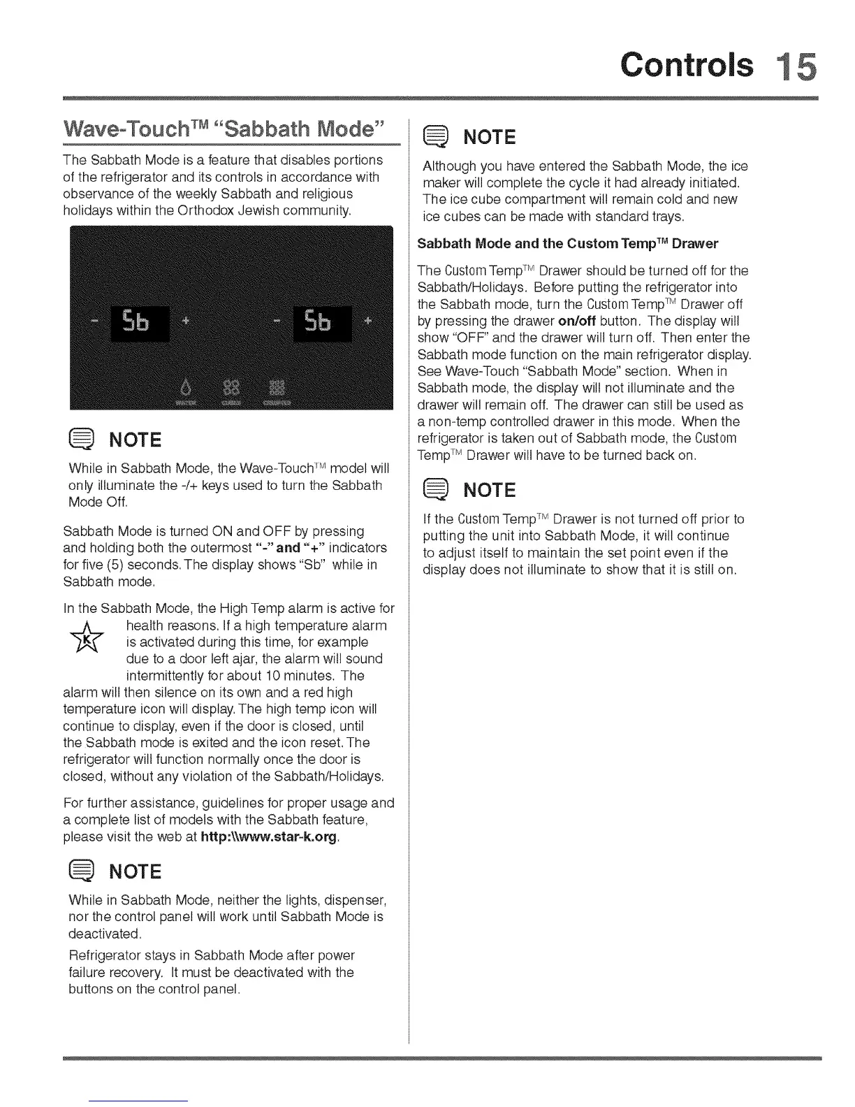 the Sabbath mode, turn the CustomTempTM Drawer off
