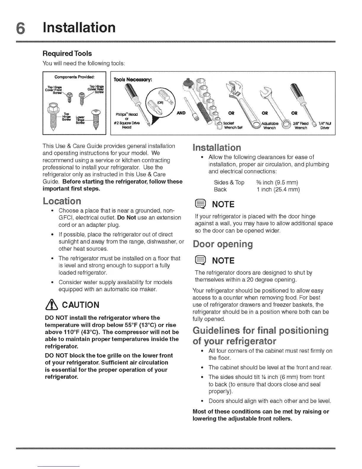 professional to install your refrigerator. Use the