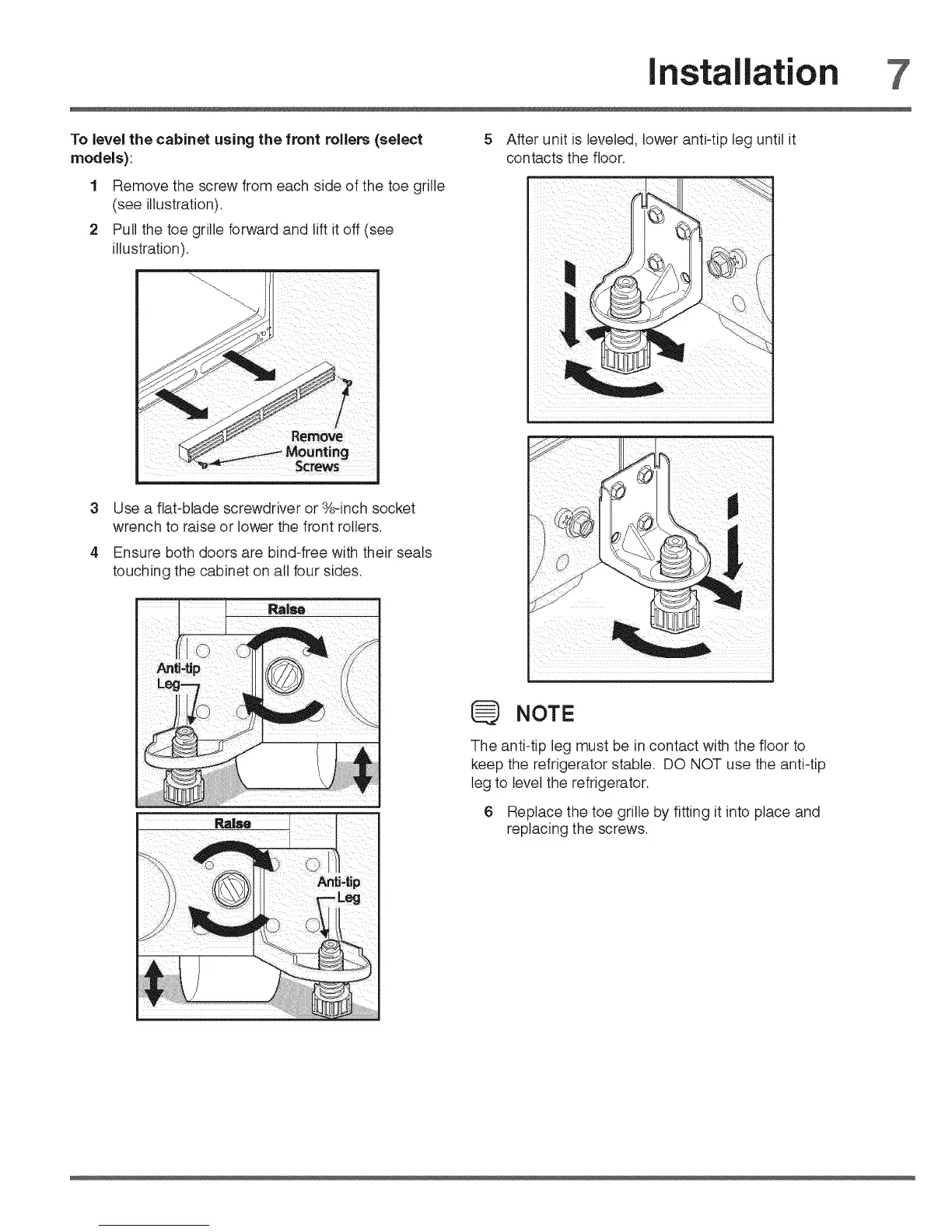 keep the refrigerator stable. DO NOT use the anti-tip