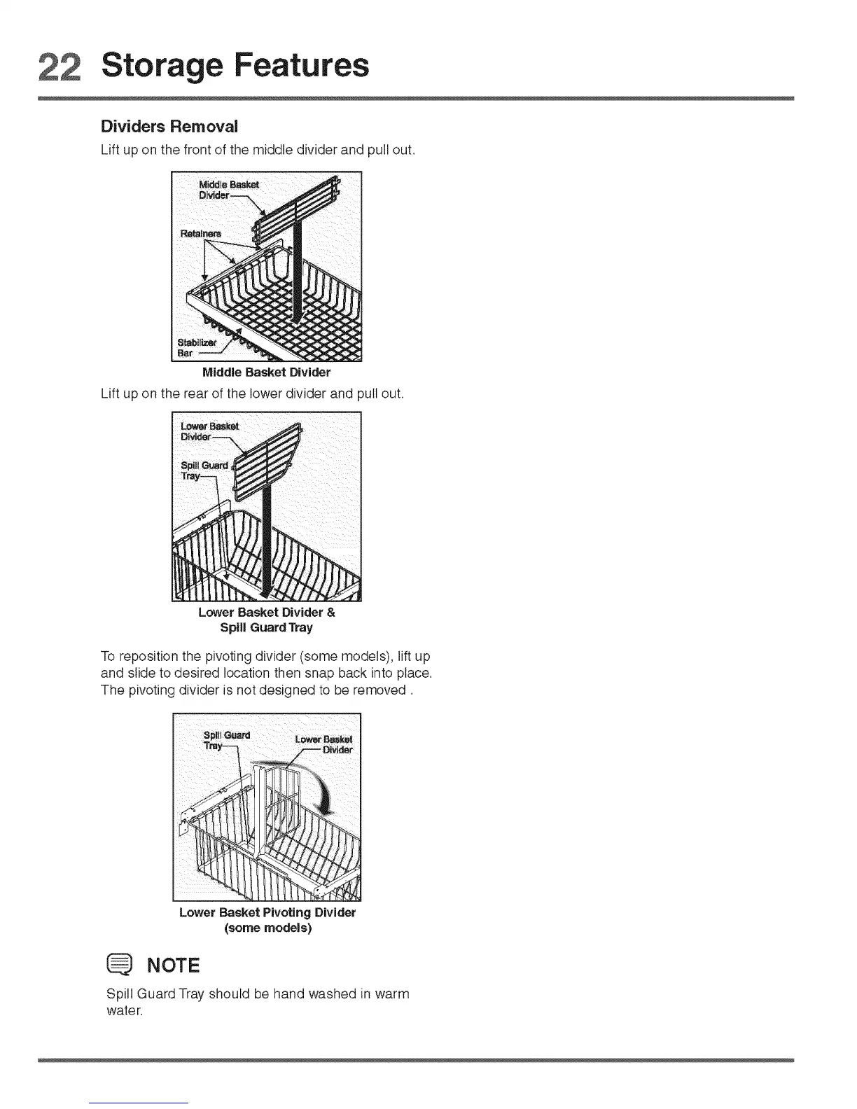 To reposition the pivoting divider (some models), lift up