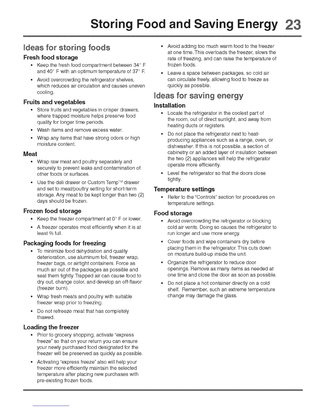 ,, Keep the fresh food compartment between 34° F