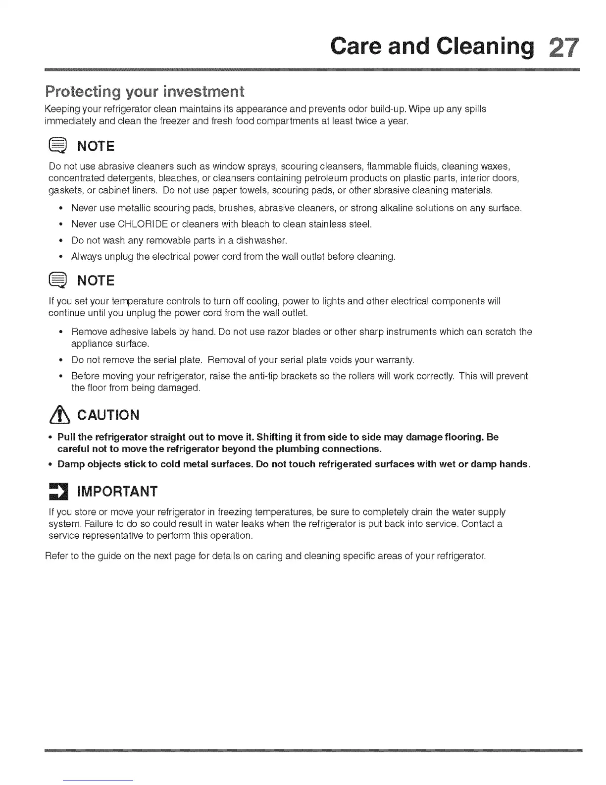 Refer to the guide on the next page for details on caring and cleaning specific areas of your refrigerator.