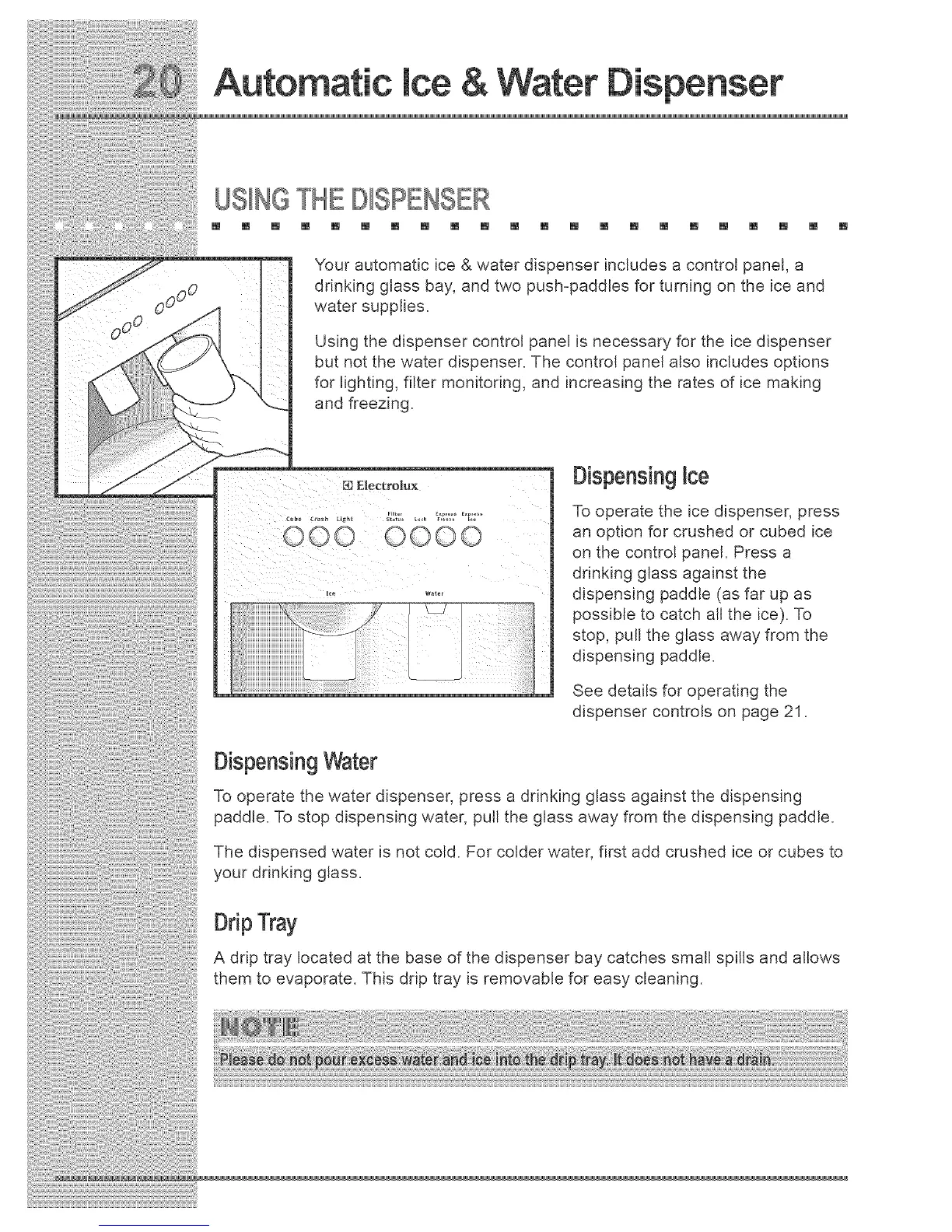 dispenser controls on page 21.