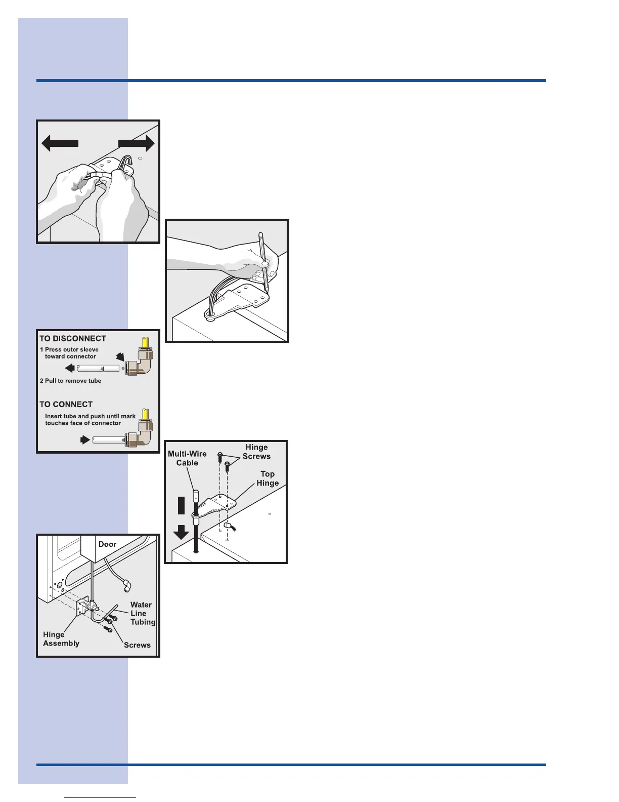 To reinstall the freezer door, reverse the above steps. Once both doors