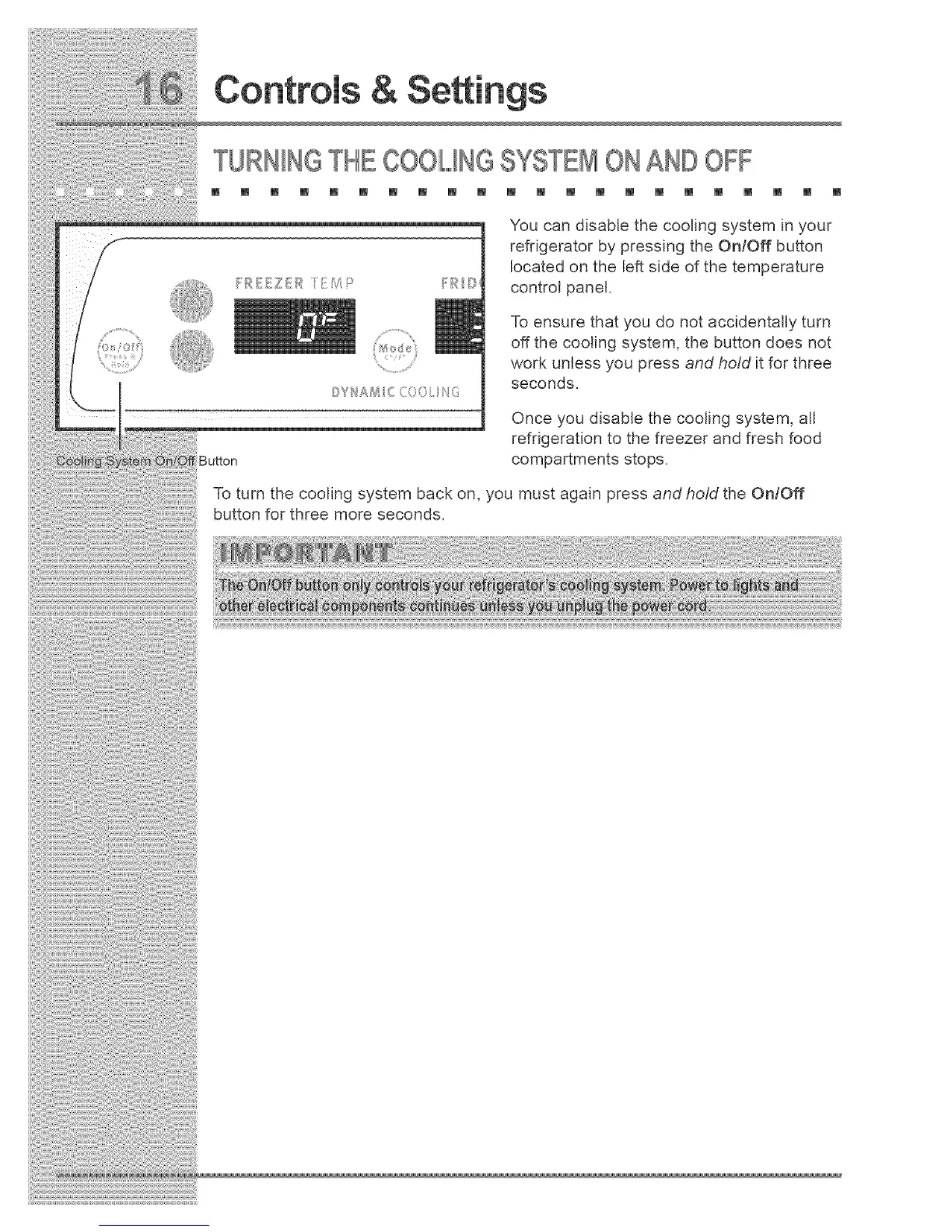 refrigerator by pressing the OnlOff button