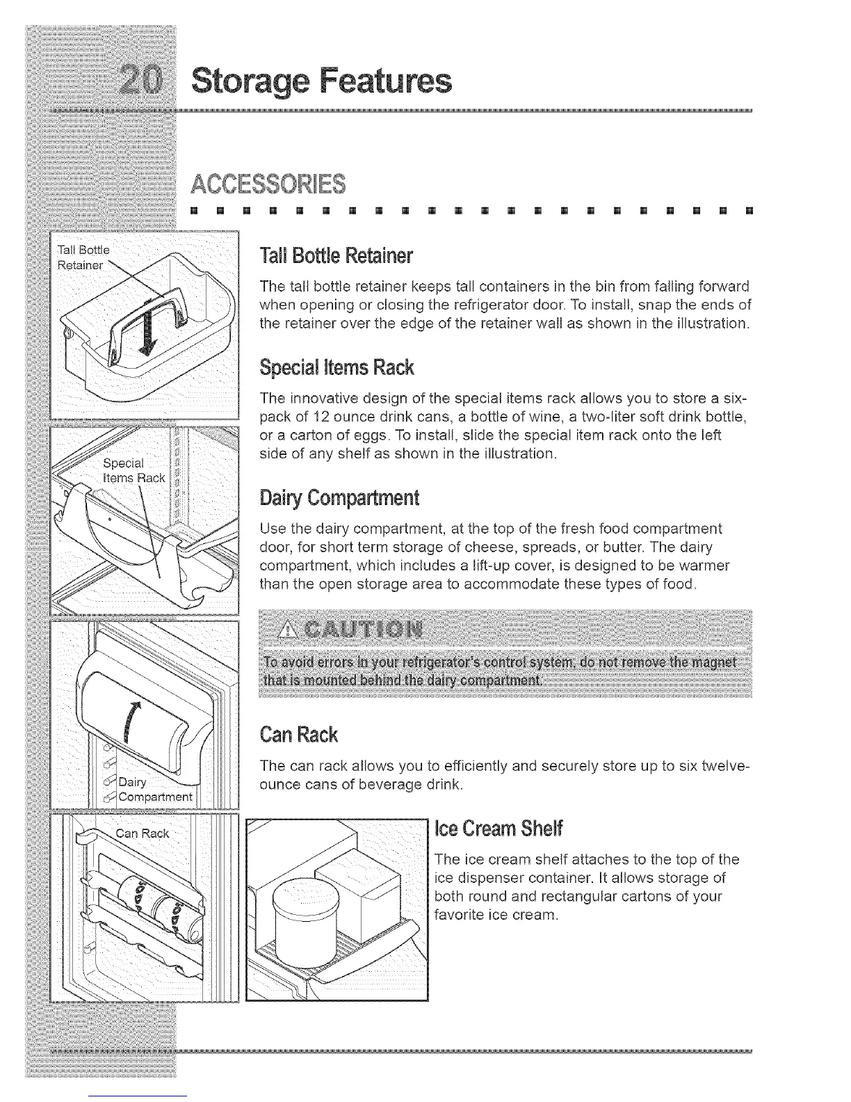 door, for short term storage of cheese, spreads, or butter. The dairy