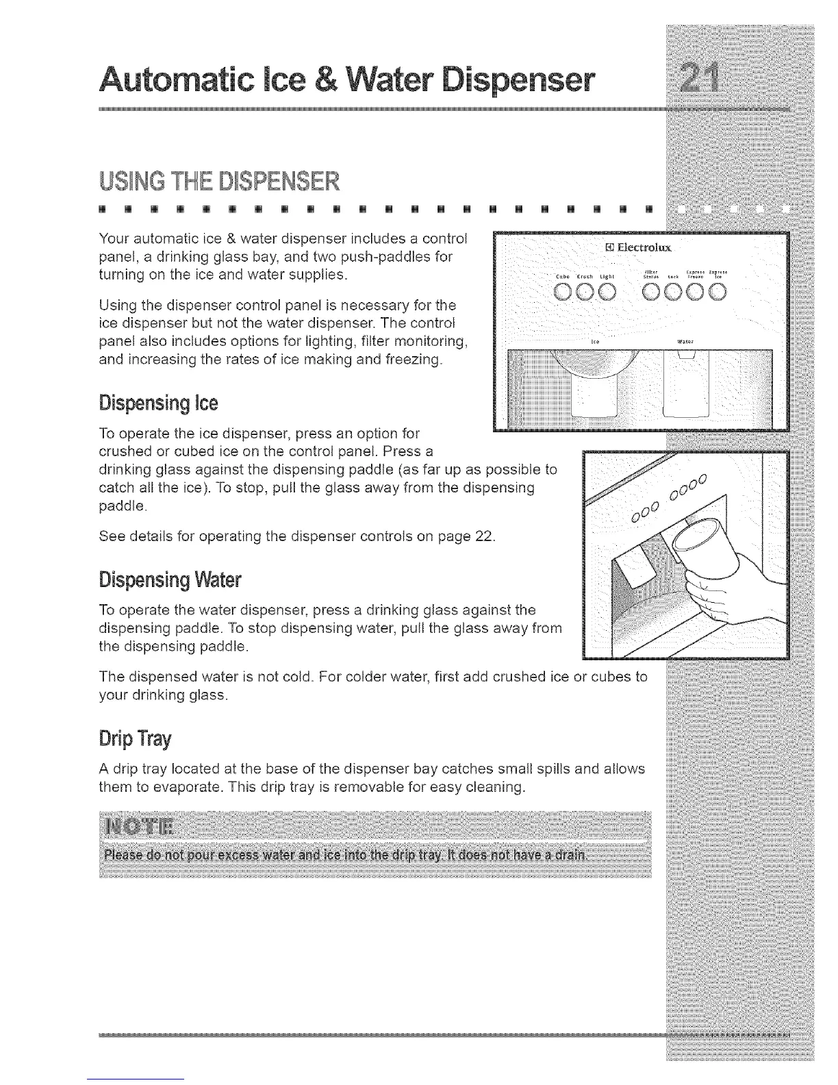 See details for operating the dispenser controls on page 22.