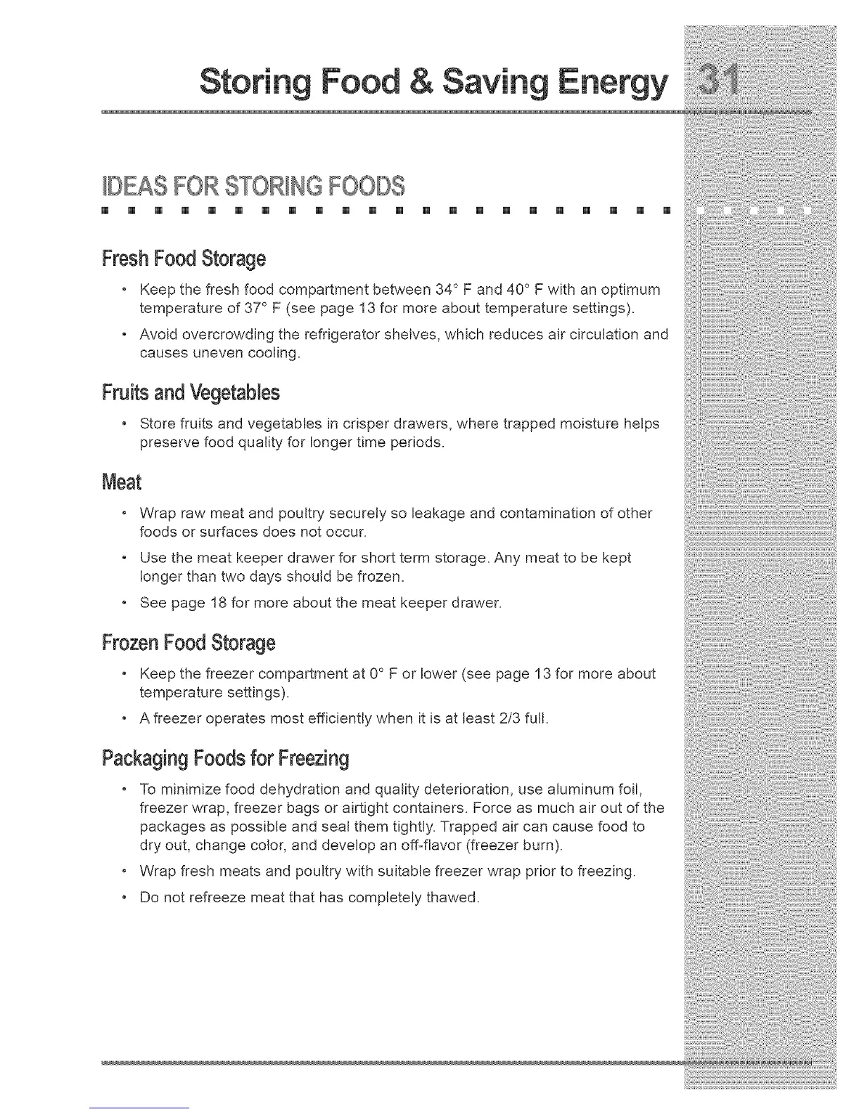 • Keep the freezer compartment at 0° F or lower (see page 13 for more about