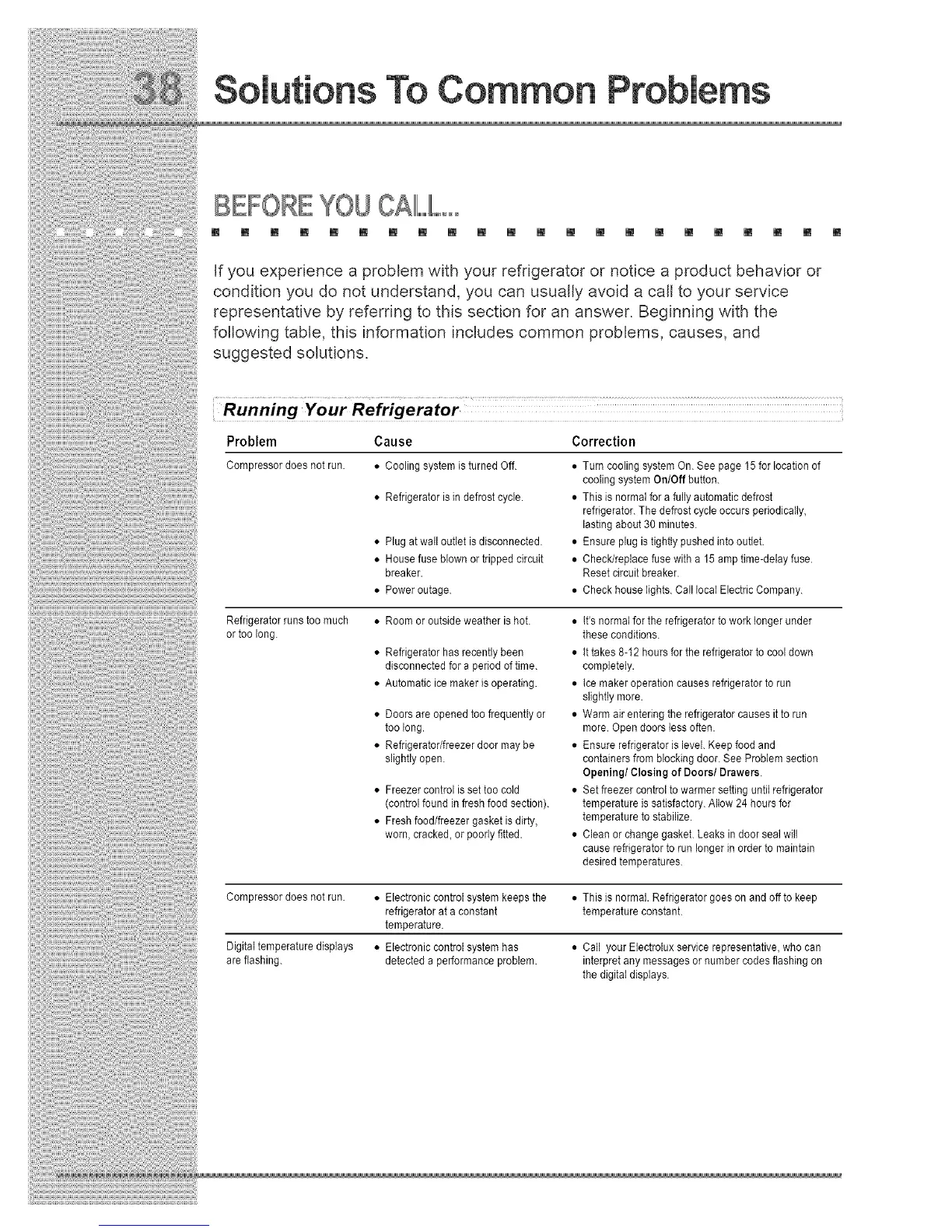 Digitaltemperaturedisplays • Electroniccontrolsystemhas • Call your Electroluxservicerepresentative,whocan