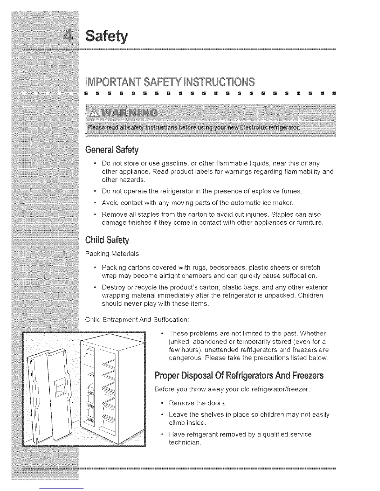 wrapping material immediately after the refrigerator is unpacked. Children
