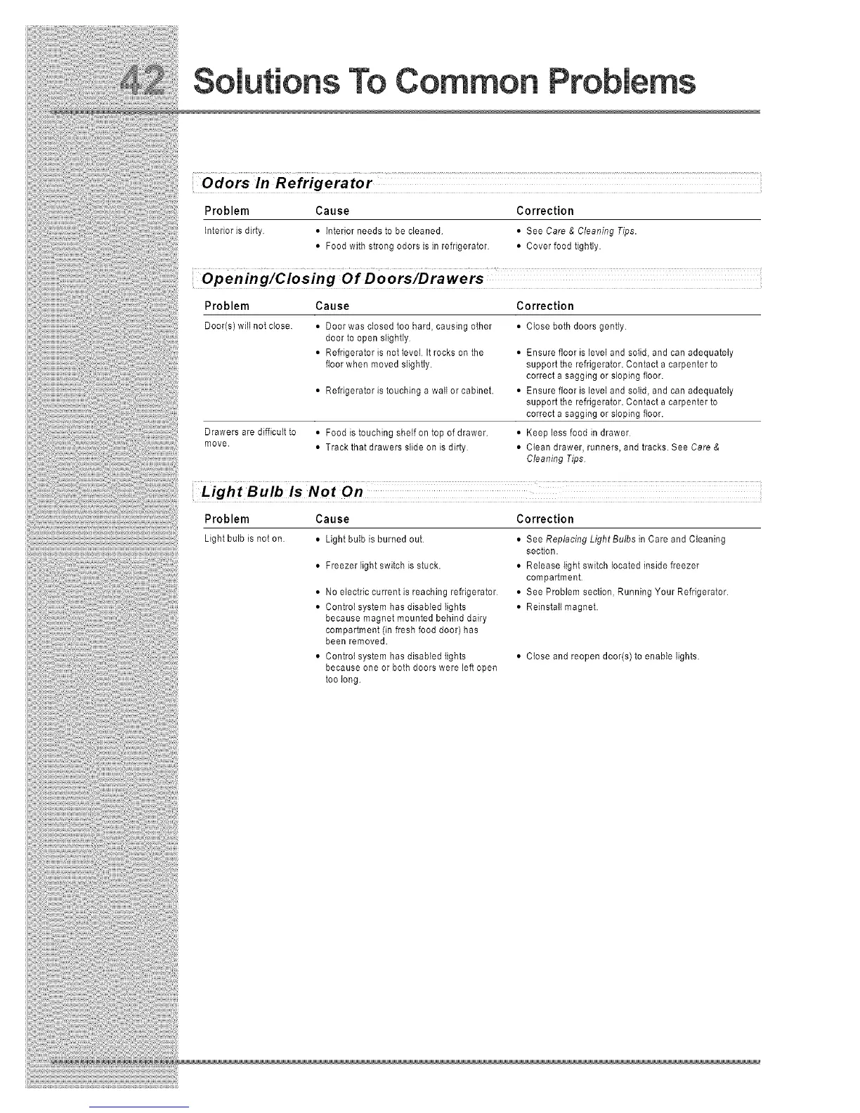 • See Problem section, Running Your Refrigerator.