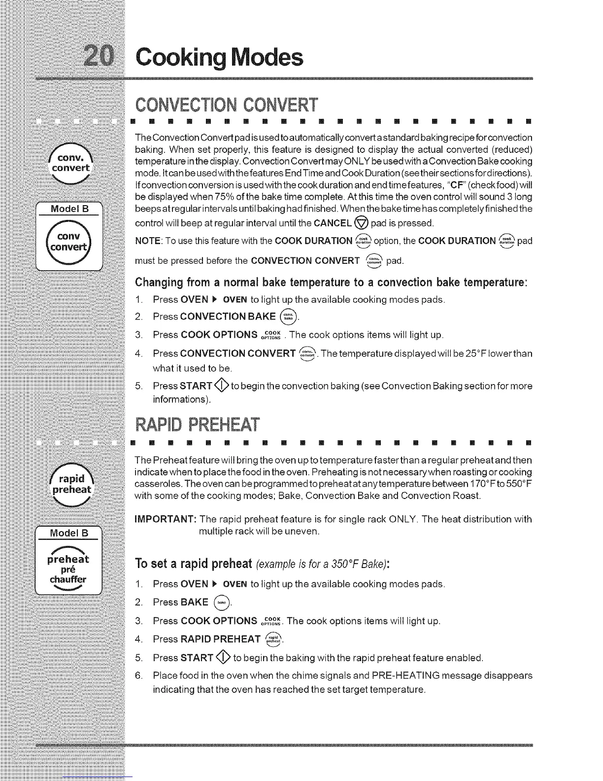 temperature inthe display. Convection Convert may ON LYbe used with a Convection Bake cooking