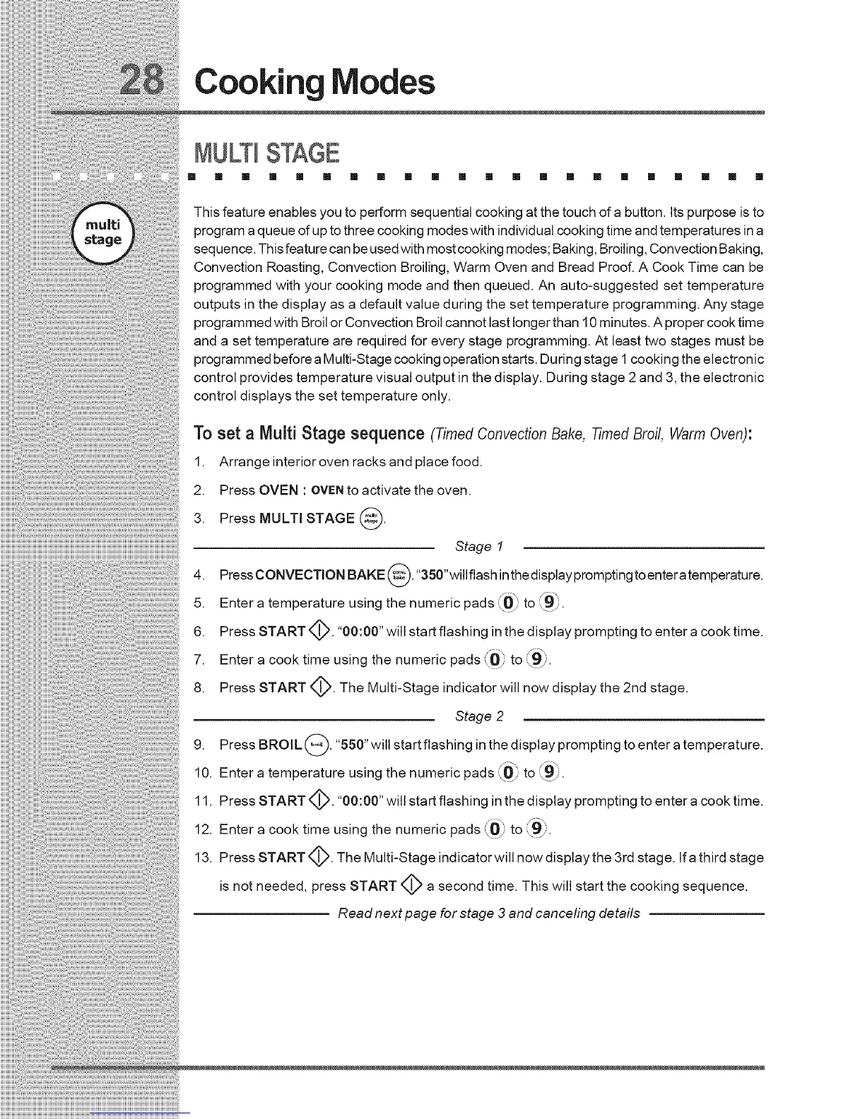 programmed before aMulti-Stage cooking operation starts. During stage 1 cooking the electronic