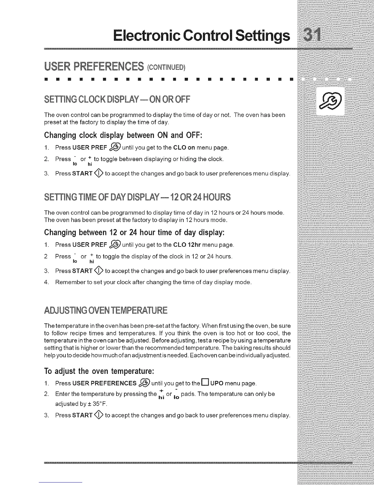 help you to decide how much of an adjustment is needed. Each oven can be individually adjusted.