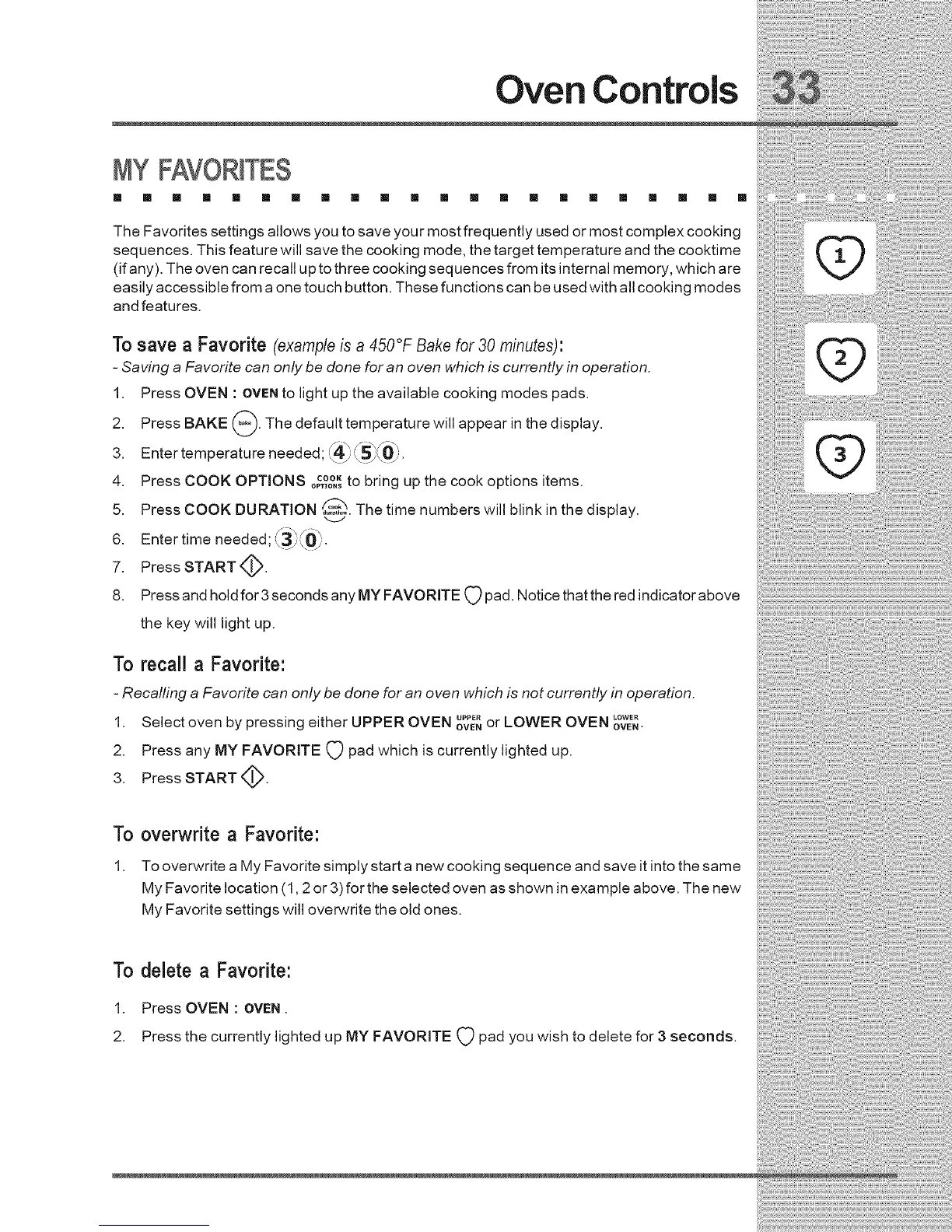 - Saving a Favorite can only be done for an oven which is currently in operation.