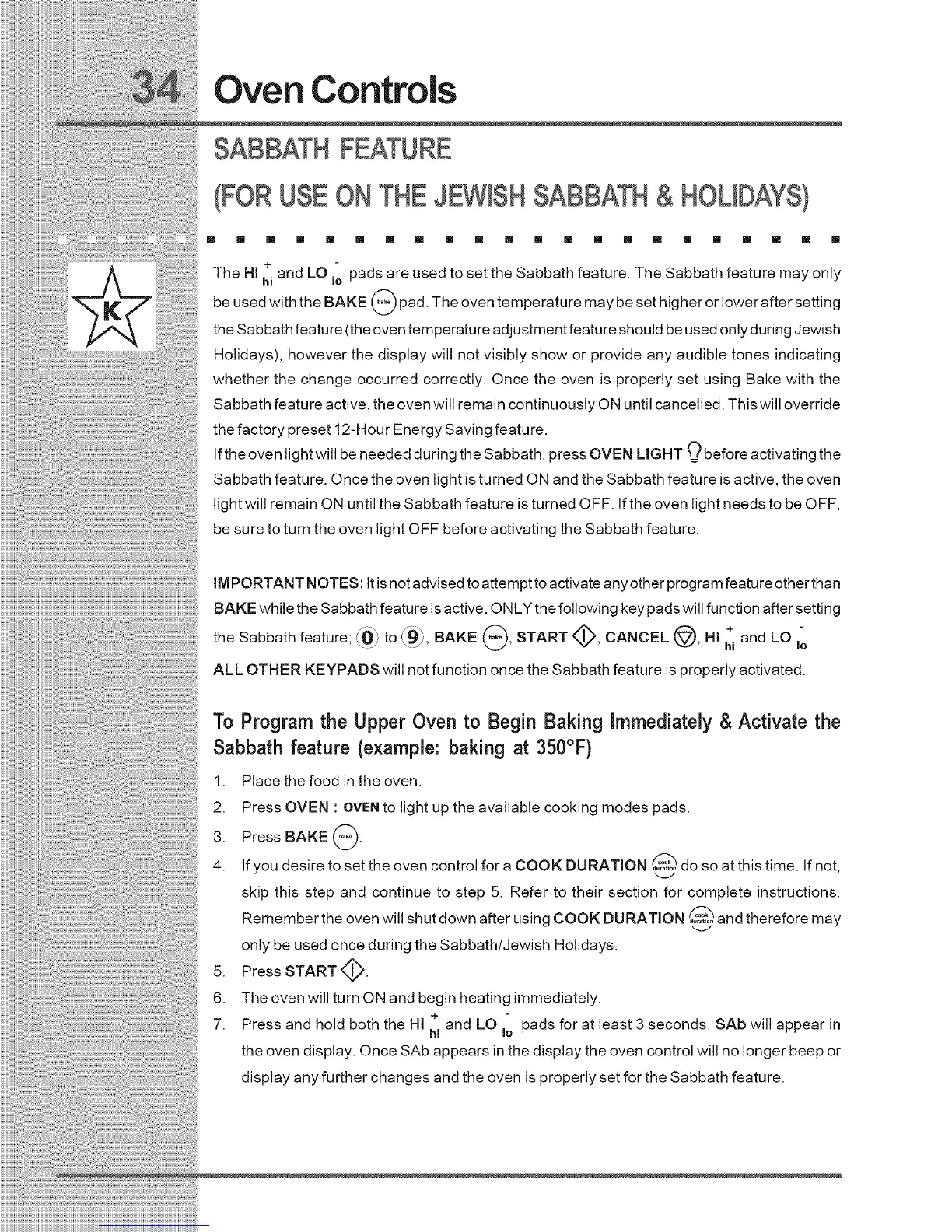 the Sabbath feature (the oven temperature adjustment feature should be used only during Jewish