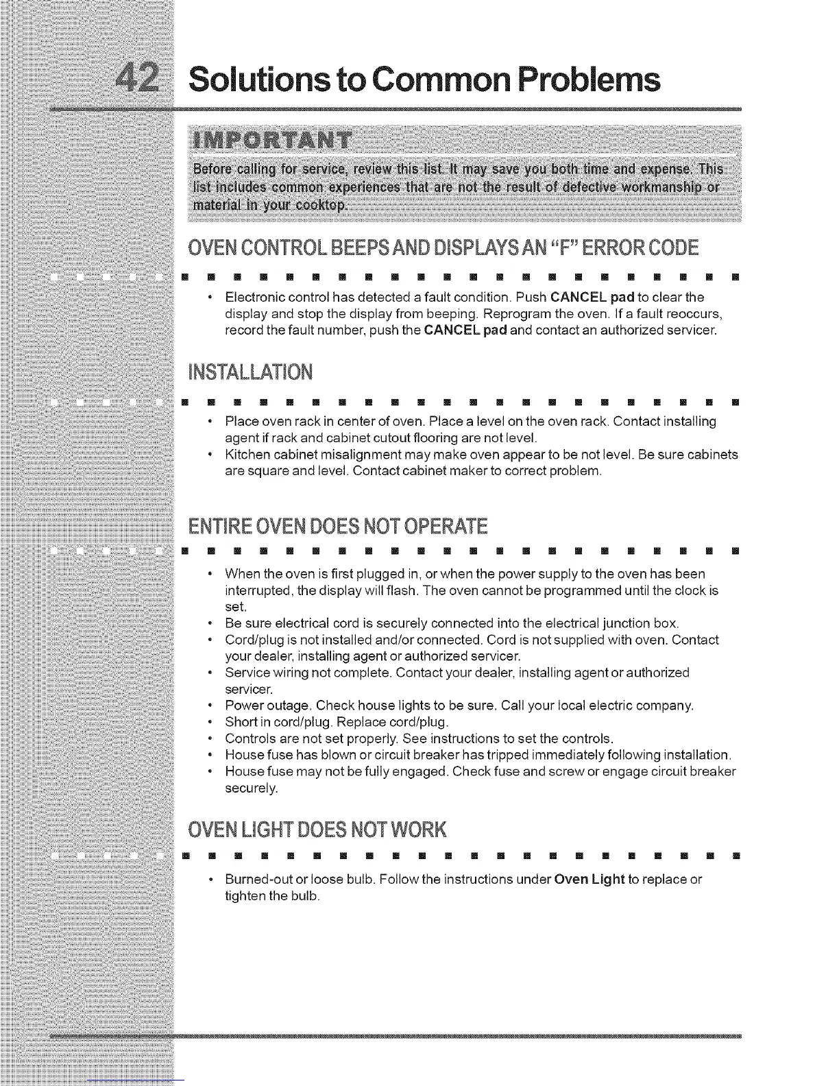 • Kitchen cabinet misalignment may make oven appear to be not level. Be sure cabinets