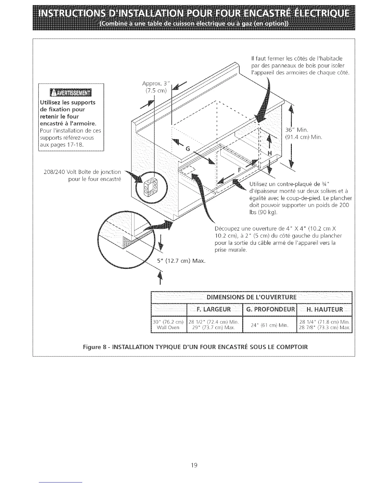 Figure 8 - INSTALLATION TYPtQUE D'UN FOUR ENCASTRmeSOUS LE COMPTOtR