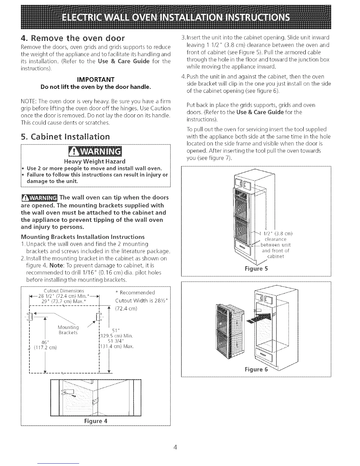 NOTE:Tile oven door is very heavy. Be sure you have a firm