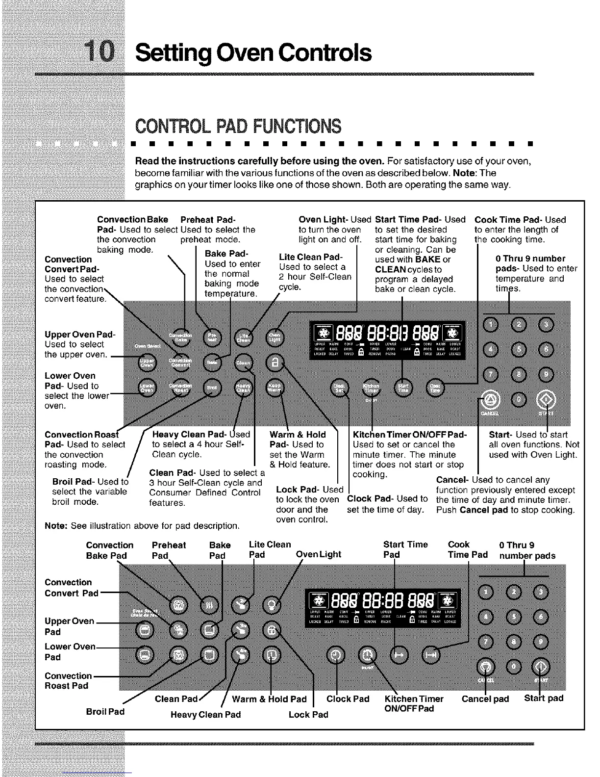 Pad- Used to Used to set or cancel the all oven functions. Not