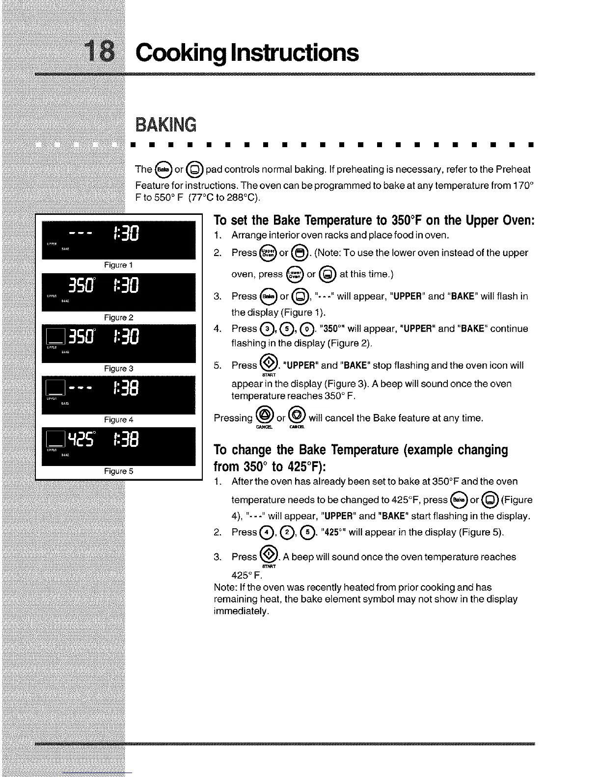 remaining heat, the bake element symbol may not show in the display