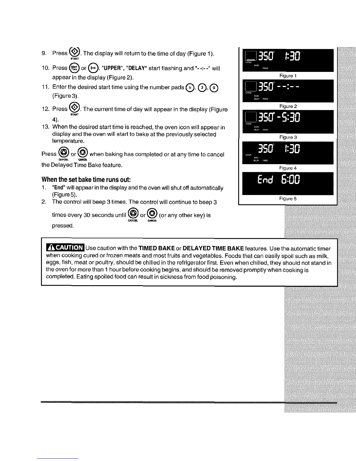 Use caution with the TIMED BAKE or DELAYED TIME BAKE features. Use the automatic timer