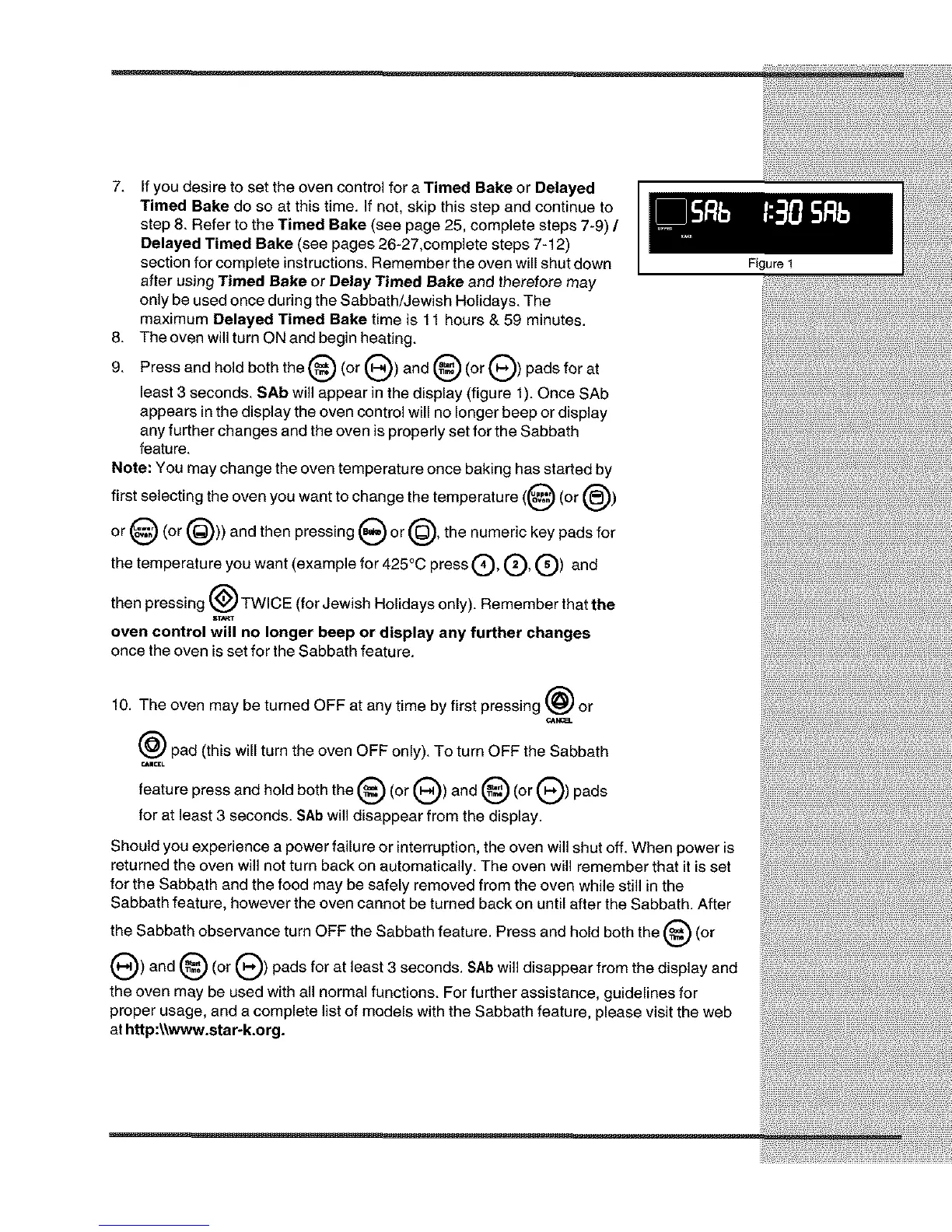 pad (this will turn the oven OFF only). To turn OFF the Sabbath