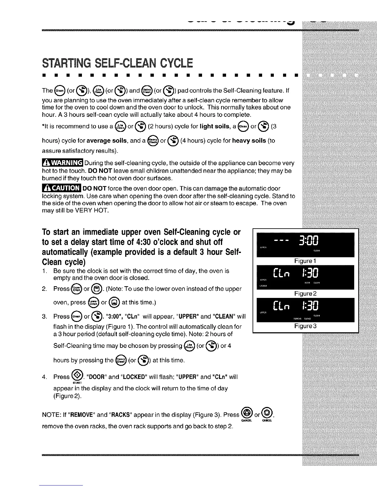 Self-Cleaning time may be chosen by pressing @ (or (_)or