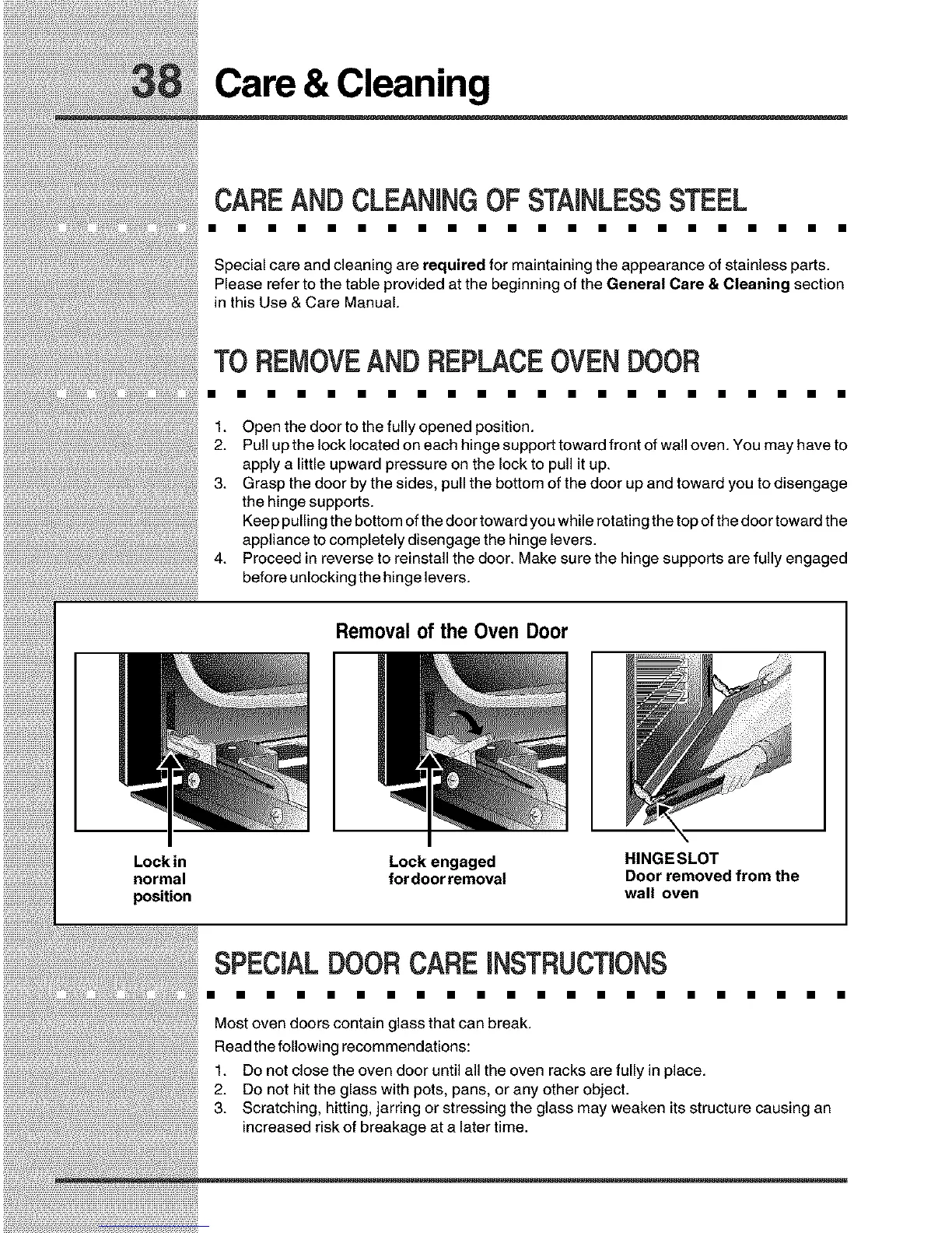 Special care and cleaning are required for maintaining the appearance of stainless parts.