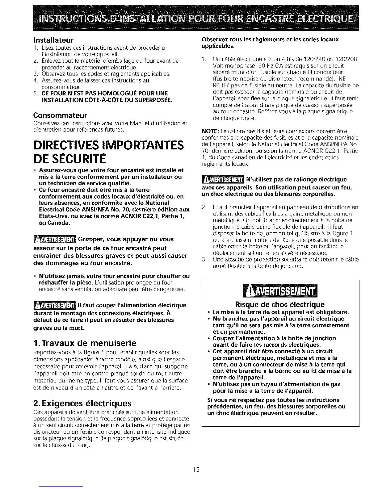 de I'appareil, selon le National Electrical Code ANSI/NFPA No.
