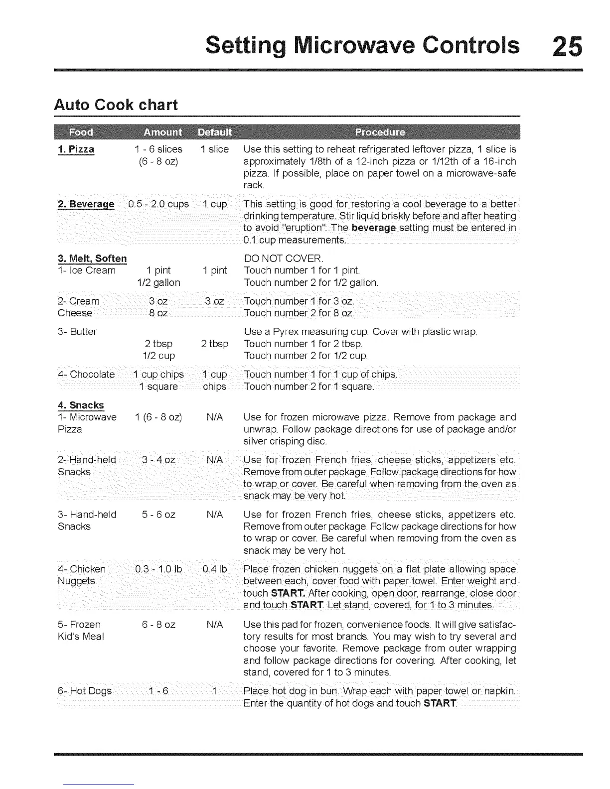 1- Microwave 1 (6 - 8 oz) N/A Use for frozen microwave pizza. Remove from package and