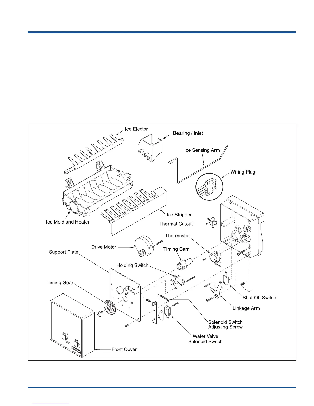 the fi ll trough. The water fi ll spout connects to a housing in the back of the freezer and directs water fl ow into the ice