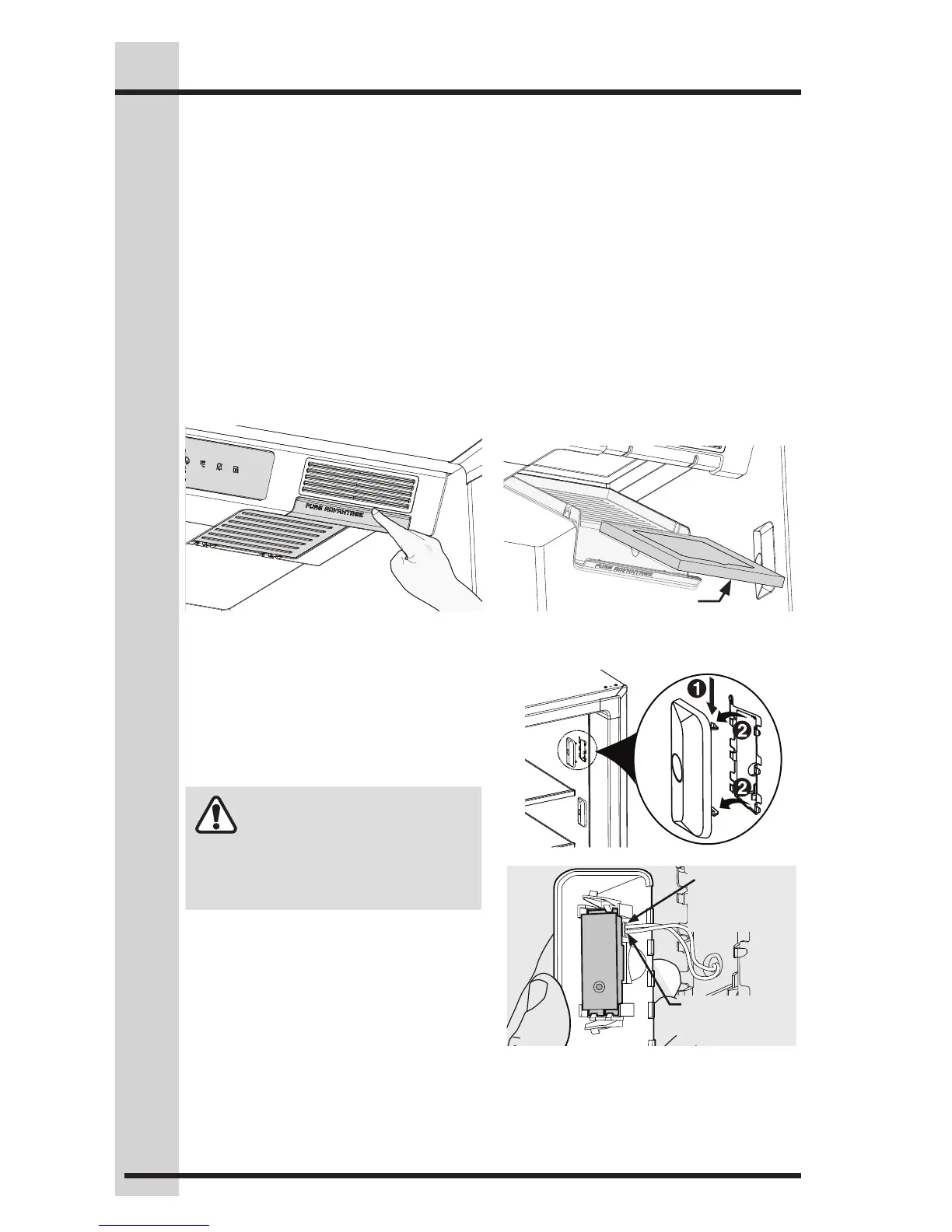 • Unpackage the new filter and place it inside the hinged bottom cover of the housing.