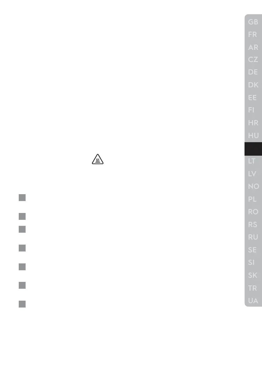 • Attenzione: La supercie dell’elemento riscaldante trattiene del calore residuo dopo l’uso.