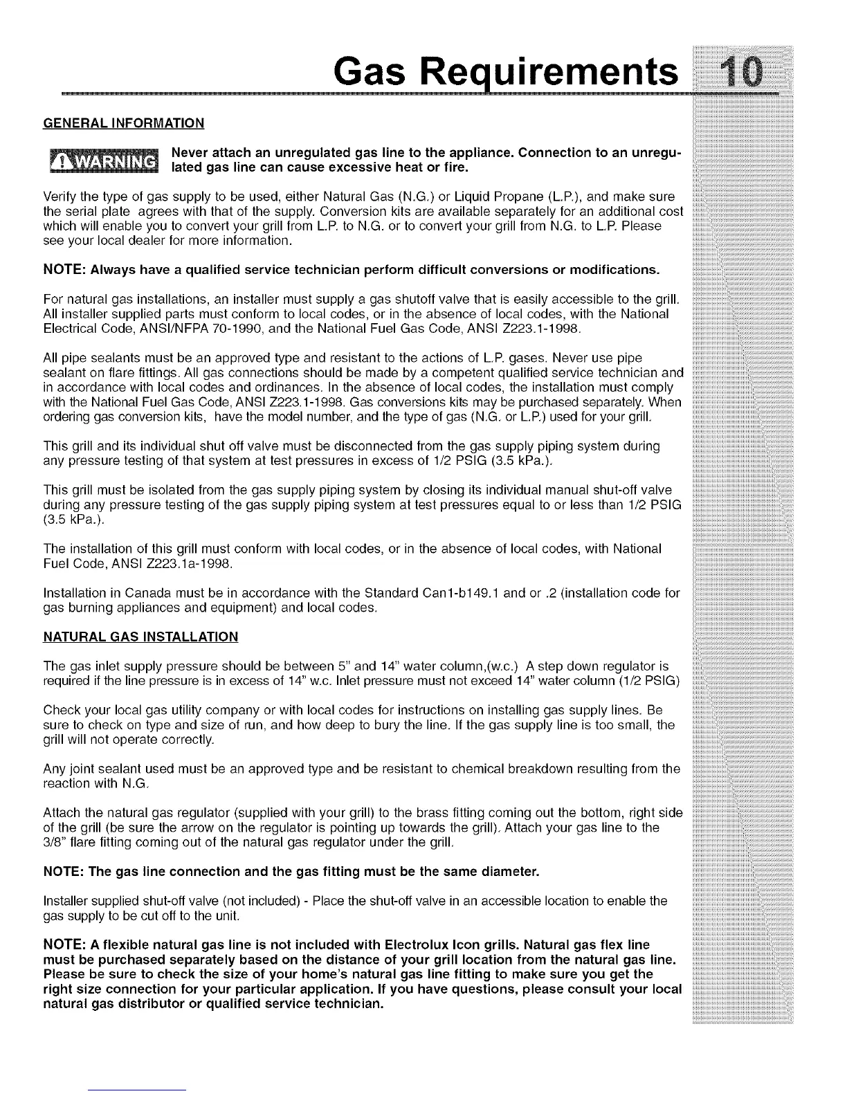 Electrical Code, ANSl/NFPA 70-1990, and the National Fuel Gas Code, ANSI Z223.1-1998.