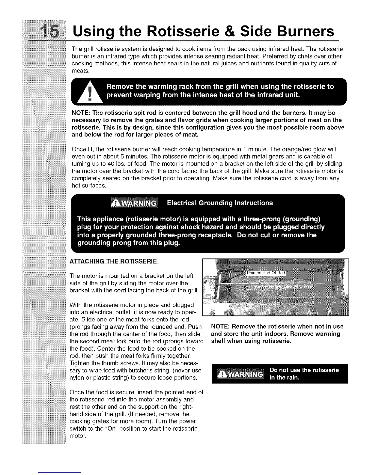 completely seated on the bracket prior to operating. Make sure the rotisserie cord is away from any