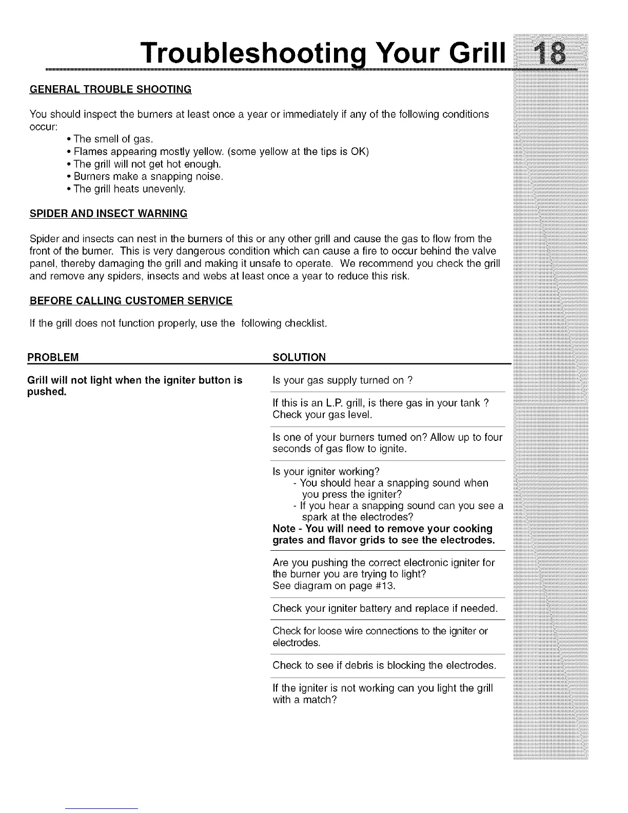 If the grill does not function properly, use the following checklist.