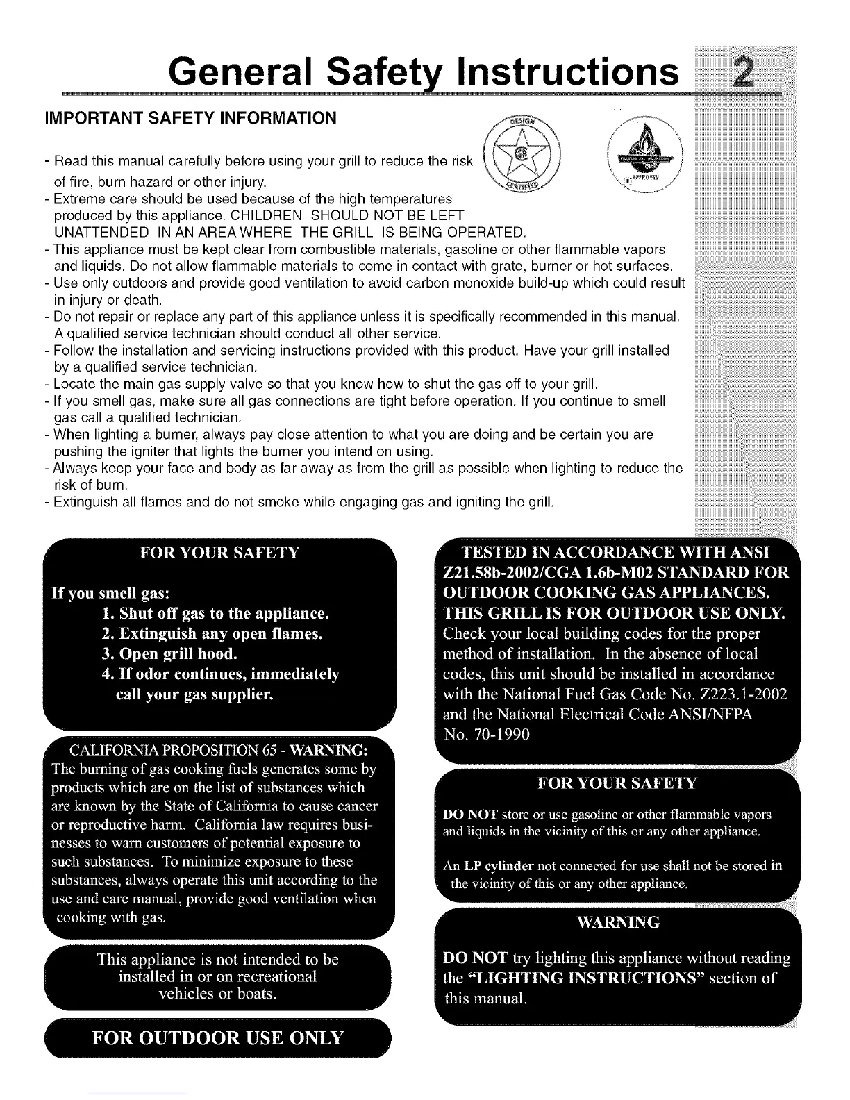 - Follow the installation and servicing instructions provided with this product. Have your grill installed