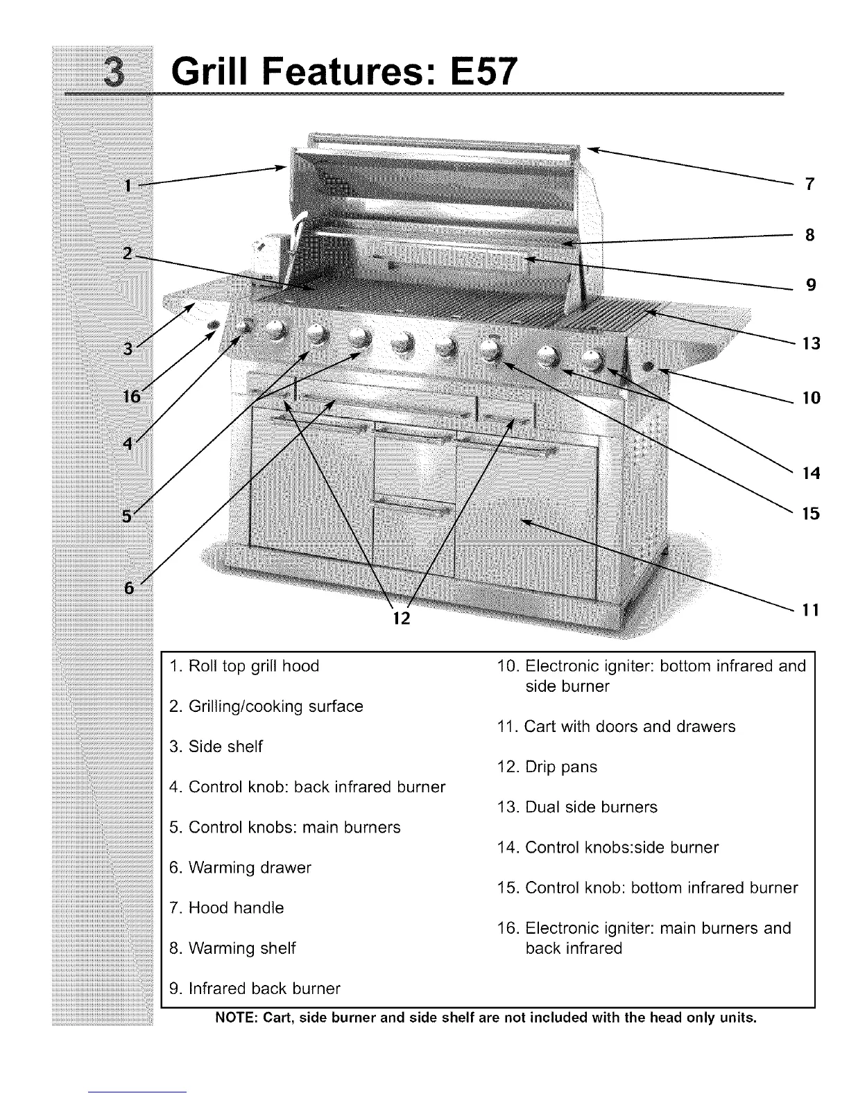 NOTE: Cart, side burner and side shelf are not included with the head only units.