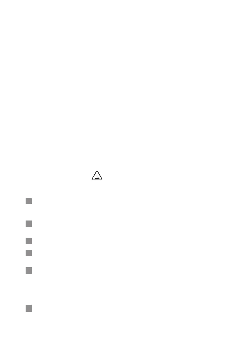 • Przewód zasilający nie może stykać się z gorącymi częściami urządzenia.