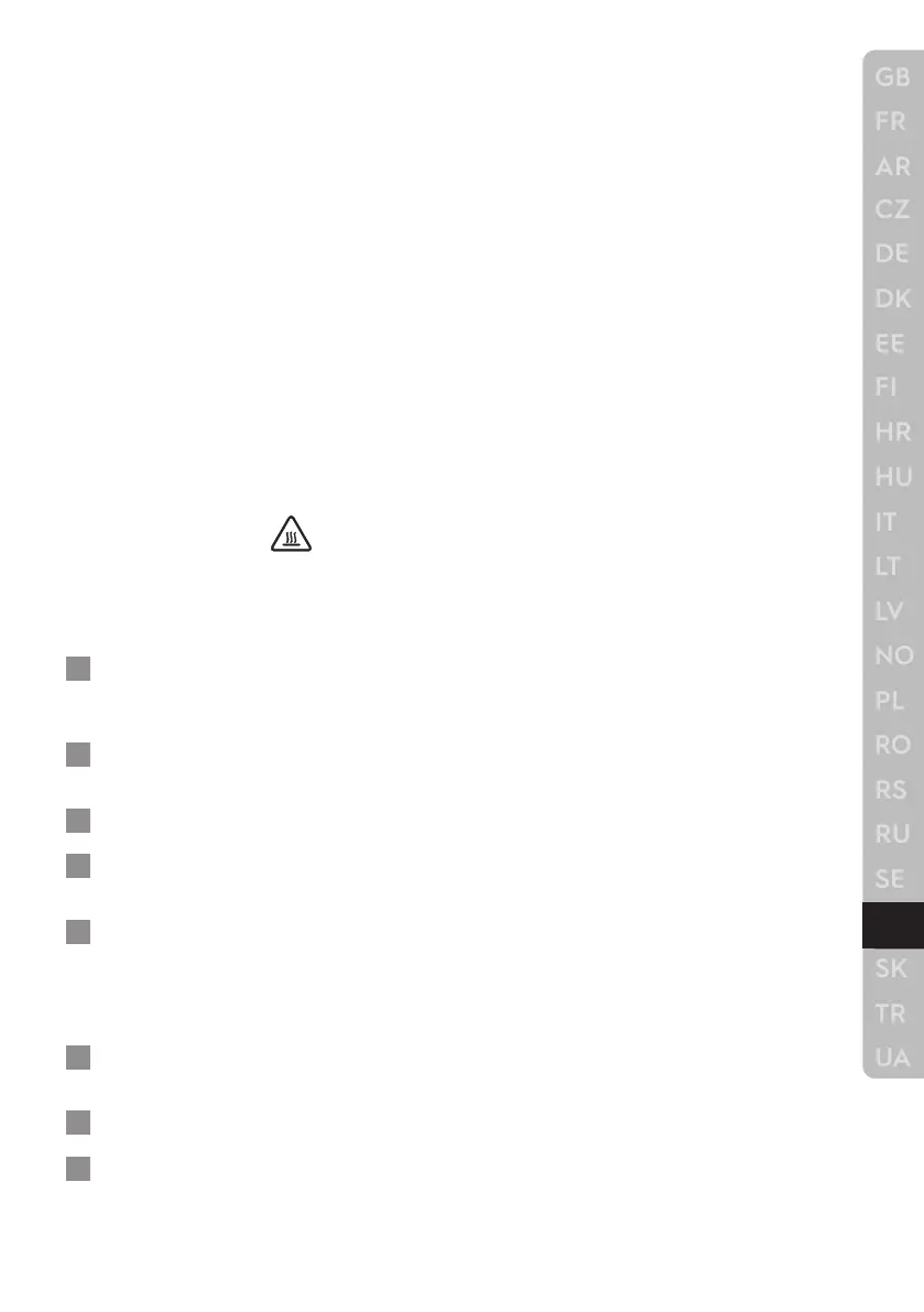 • Pozor: Površina grelnega elementa lahko po uporabi ostane vroča.