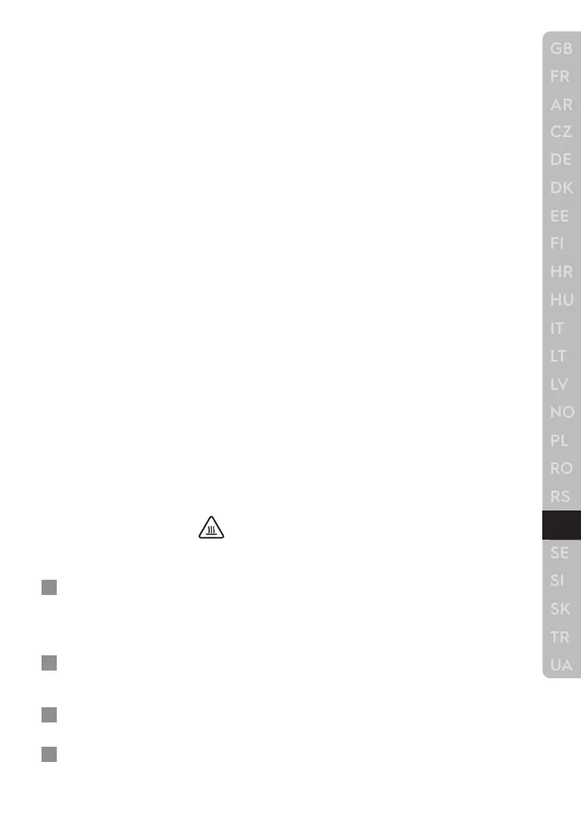 • Осторожно! Поверхность нагревательного элемента сохраняет остаточное тепло
