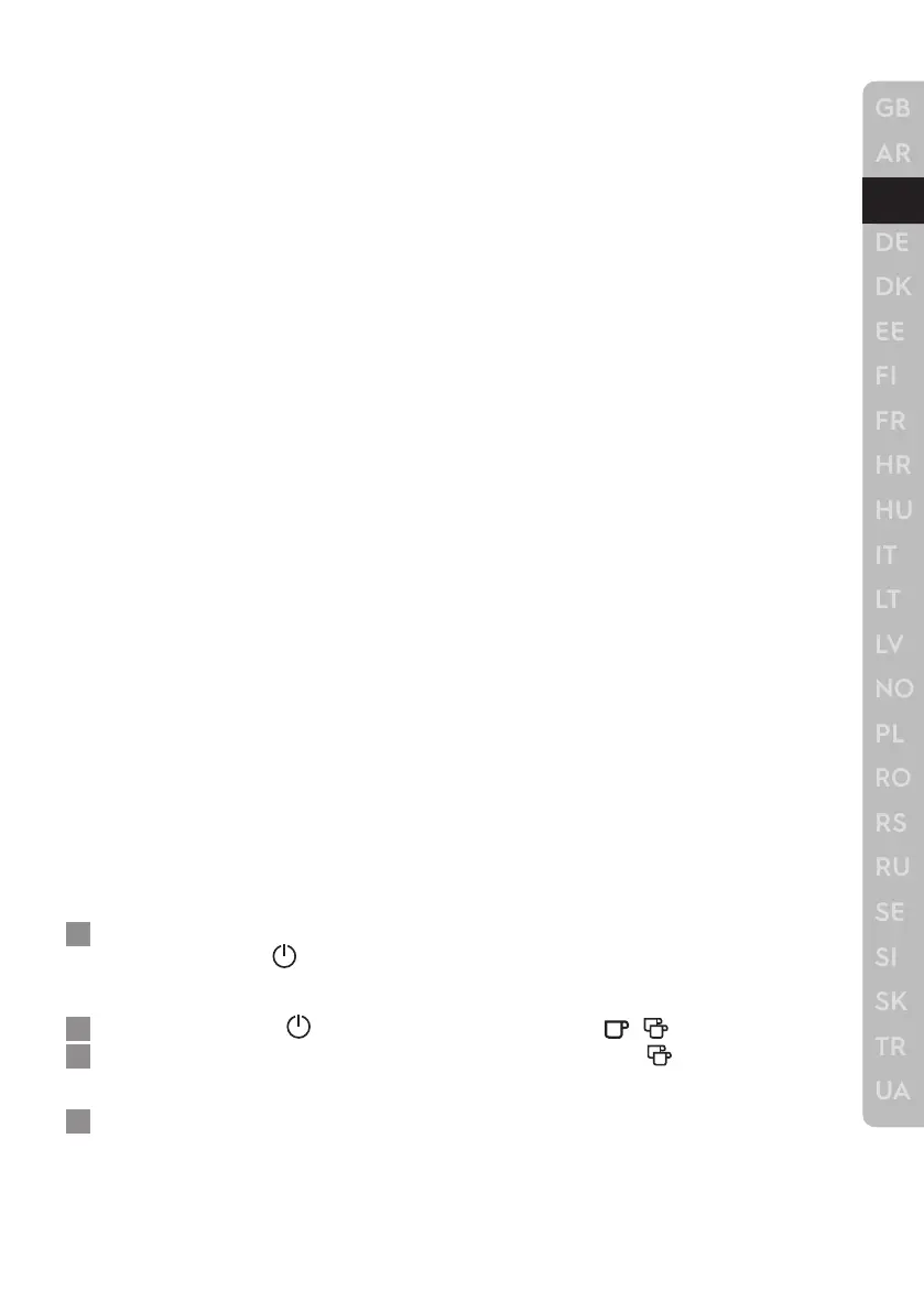 2 Spusťte kávovar tlačítkem , jehož kontrolka se zcela rozsvítí a tlačítka a začnou blikat.