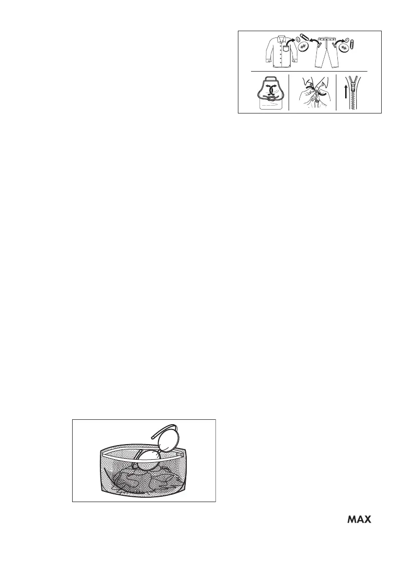 • Avoid washing garments full of long