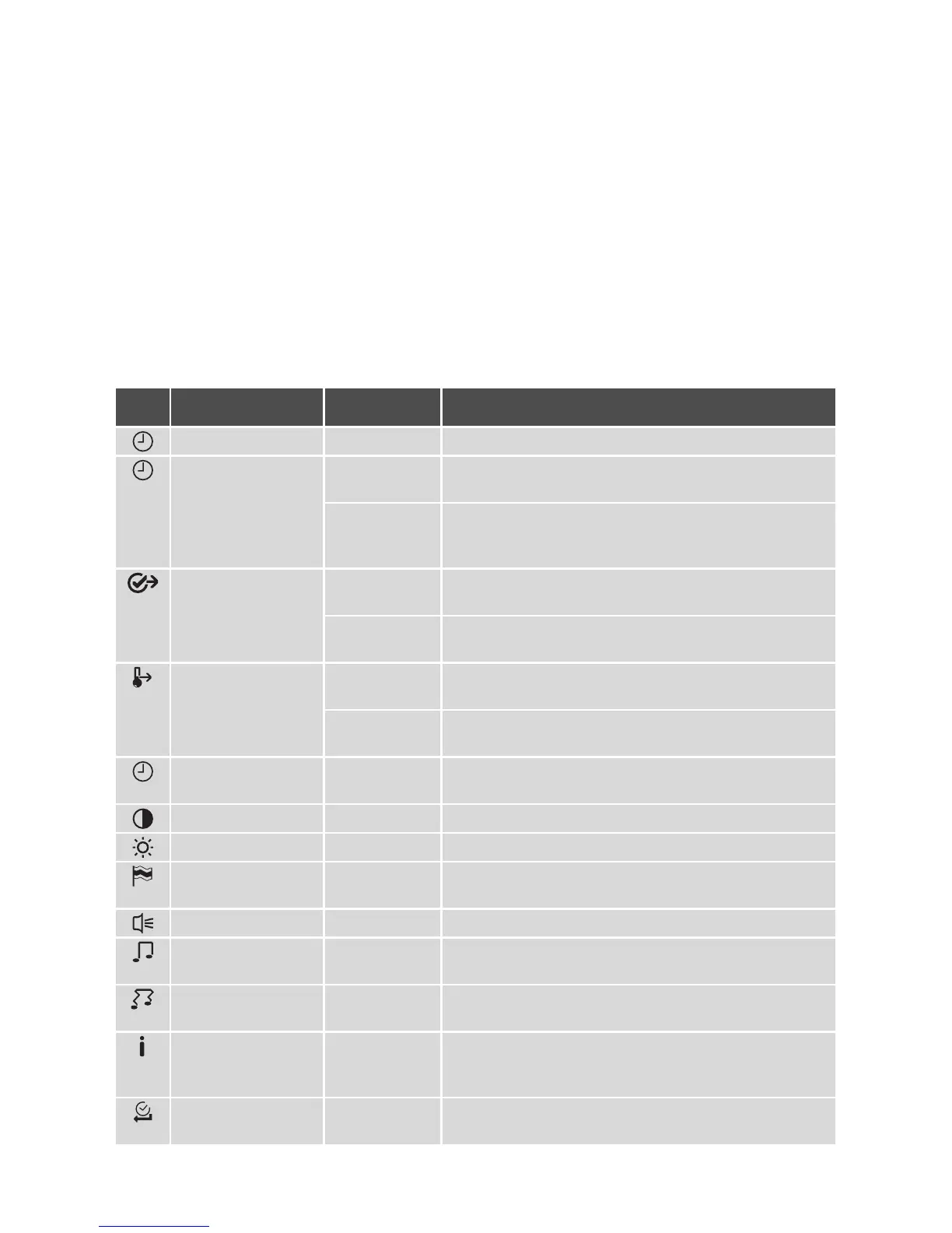 Buzzer Volume 1 ..... 10 Set volume of key beeps and signals in steps.