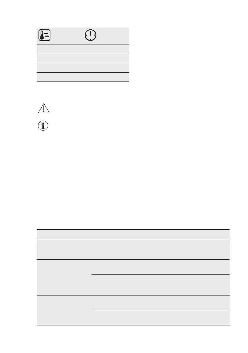 temperature, cooking time and shelf