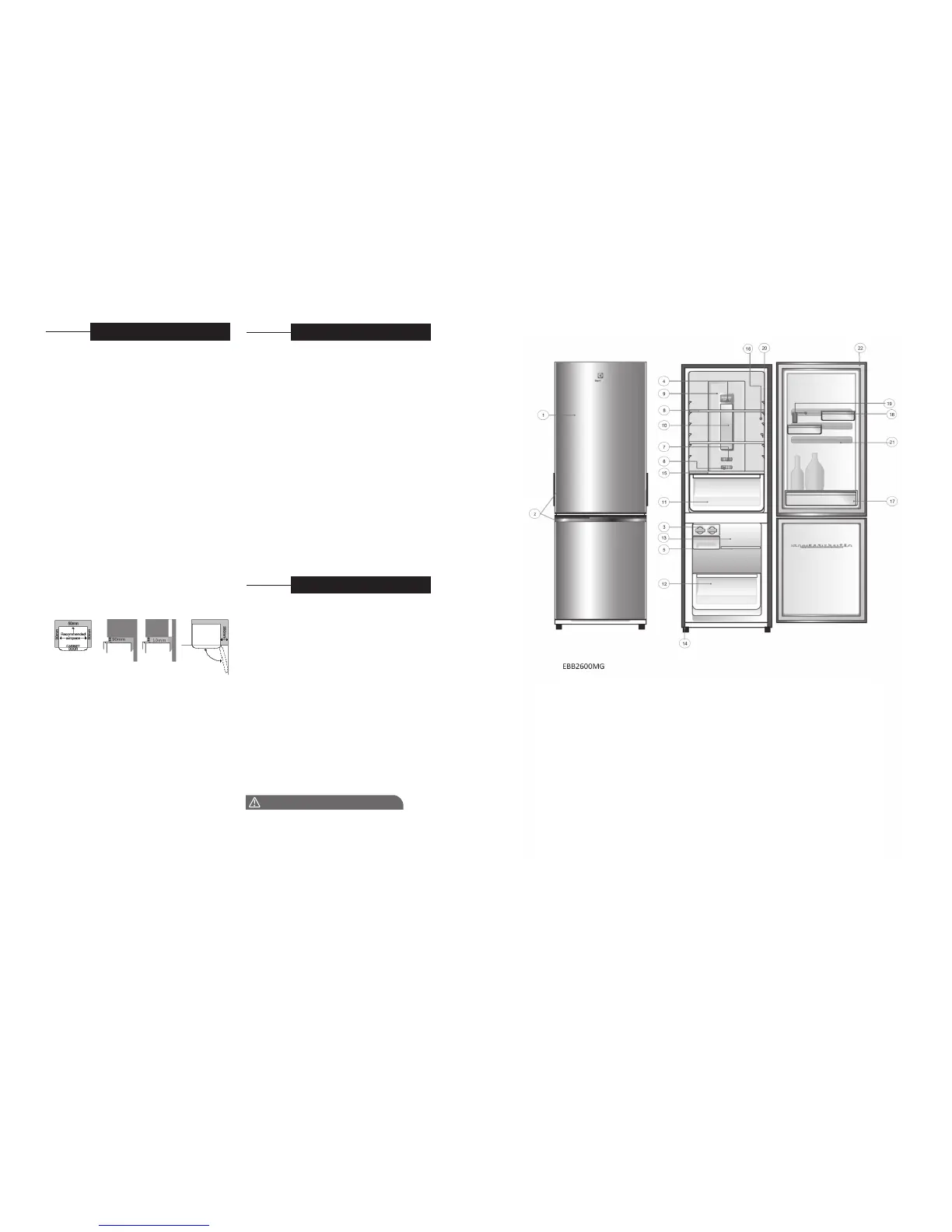 lemari es dan tembok harus lebih dari 75mm.