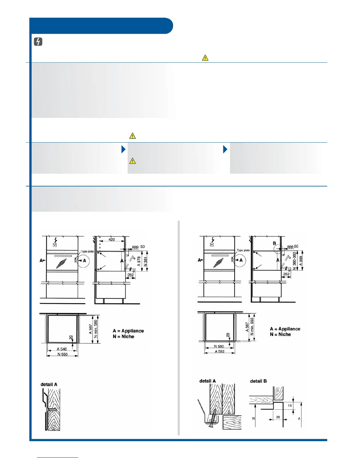 When installing several appliances only one recess is necessary. The support brackets are also available as optional extras.