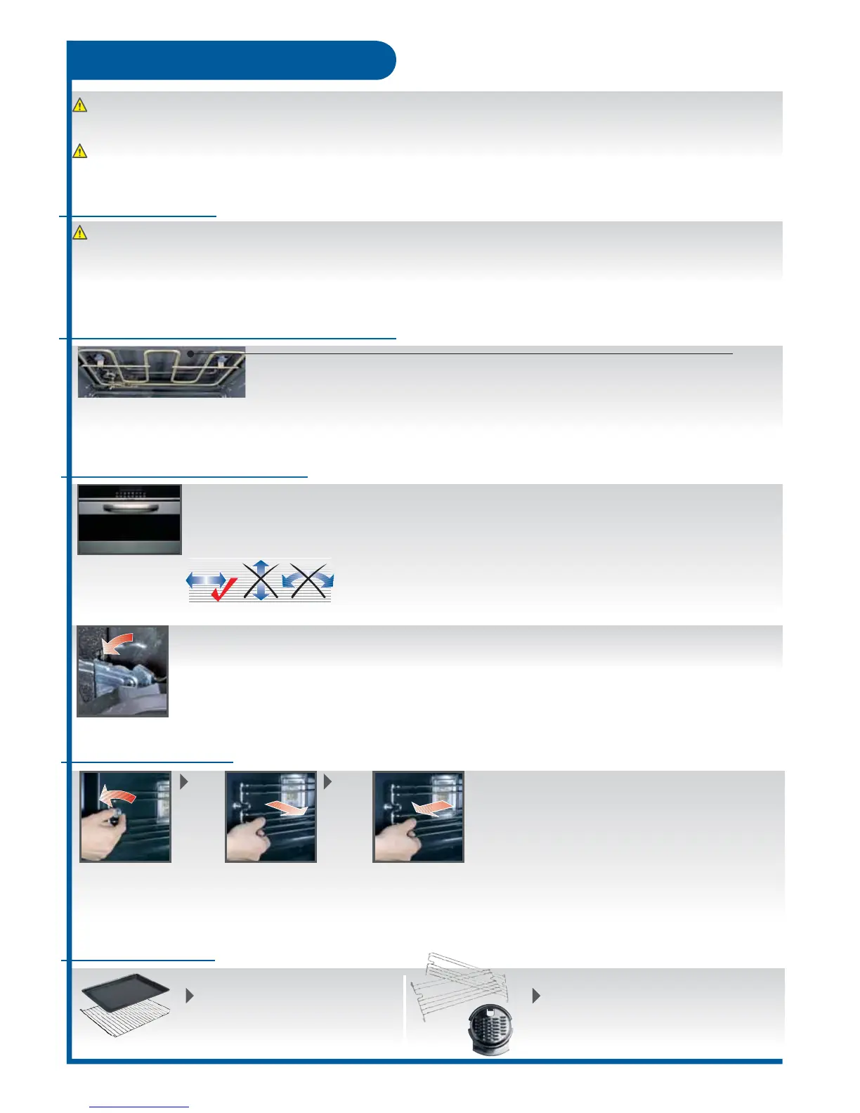 While cleaning oven shelf runners, lamp glass and oven door, heating elements must not be switched on.