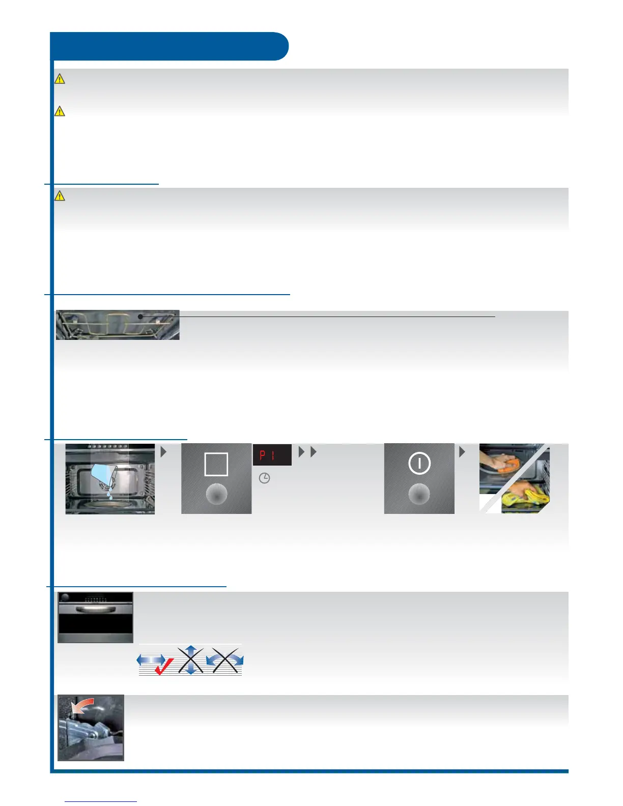 The oven has to be cooled down so as to be able to touch the central panels safely. Only the oven light must be switched on.